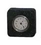Thirty hour backwind movement is running. The metal case is 4 inches square, has etched designs, case not cleaned, good dial, beveled glass....