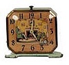 Lux Clock Co. animated novelty alarm clock. Ticking of clock turns the spinning wheel and foot petal.