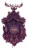 This is the poplar "Hunting Scene" design in synthetic carved wood. Deer head with glass eyes and spreading antlers, two rifles, quail, and rabbit. Cu...