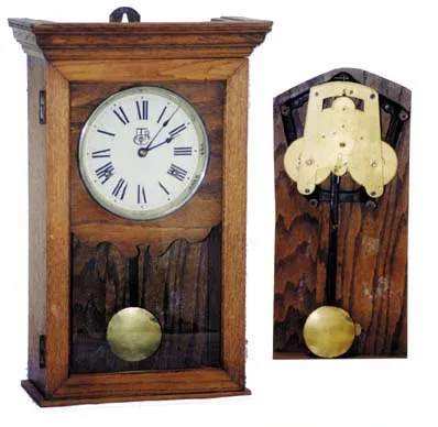 Large double spring movement,surely must be 30 day, resembles the Seth Thomas 30 day movements shown in Ly-Seth Thomas. Brass pendulum, wood stick, hu...