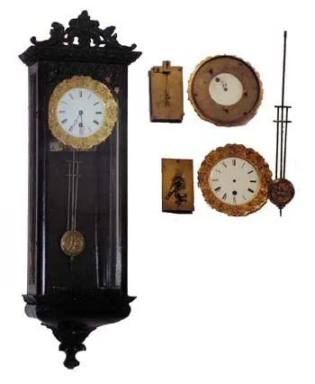 Miniature wall timepiece, probably Austrian, ca about 1850.
