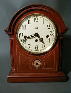 By Sligh with arched bonnet, fluted pilasters and patera inlay. 12 inches high Sale 402 Lot 155 (IMPORTANT:The "price realized" includes a buyer's pre...
