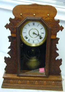 A "GERANIUM "OAK MANTEL CLOCK, William L. Gilbert Clock Co. Winstead, Connecticut, USA.