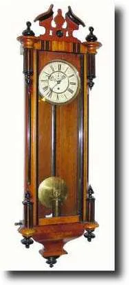 in the Viennese style. Not a bad looking clock, but the movement has been improperly assembled with the maintaining pawl behind the great wheel, and c...
