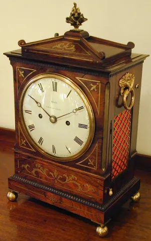 8 day rosewood and brass inlay regency twin fusee bracket clock, with pull repeat. Rigby, Charring Cross, Circa 1825