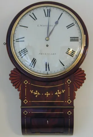 A good English mahogany drop trunk dial clock, E. Whitehead, Sevenoaks