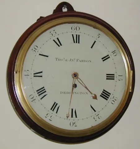 A good George III mahogany English dial clock. Thom & Jno. Fardon, Deddington, Circa 1796