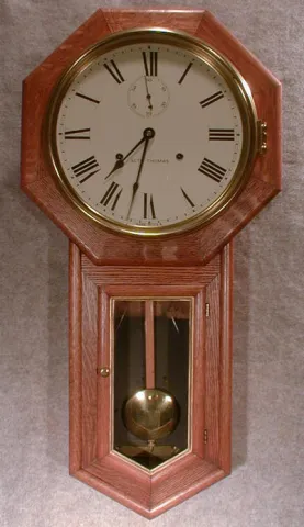 SETH THOMAS "WORLD" WALL CLOCK IN AN OLD OAK CASE. CIRCA 1905-15.
