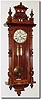 C.1890, German, Gustav Becker, 2-Weight wall regulator in the Vienna style. Has a good Becker movement (original to case), serial number 1,505,194, and with cream colored dial with red fleur-de-lis trim between the numerals, and with "GB' trademark as well. The walnut case retains original top/bottom/ finials and is in very good condition, except for a small warp in the top molding. Book matched veneer in the case back is very attractive. Height 52'