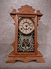 THIS AN ANSONIA OAK SHELF CLOCK THE "AMAZON". THE GLASS HAS A SILVER PATTERN. CIRCA 1895-1900.