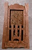 THE SQUARE WOOD DIAL HAS APPLIED CAST ARABIC NUMERALS. THERE IS A VISIBLE BRASS PENDULUM BOB BEHIND THE PICKET DOOR. THE 8 DAY MOVEMENT STRIKES THE HO...