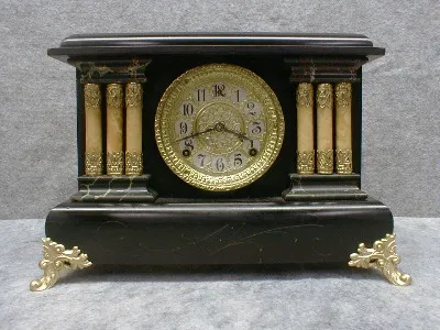 GILBERT BLACK MANTEL CLOCK "AUSTRIA" IN AN ENAMELED WOOD CASE. CIRCA 1906
