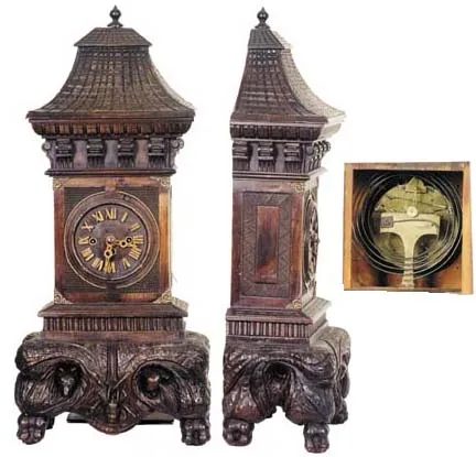 Beautiful ebony case has hundreds of pieces of pearl inlay, both on the outer door and on the dial surround. There is also a great amount of wire inla...