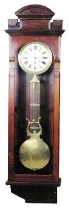 8 day movement strikes hours and half hours on a coil gong. Has no maintaining power, but has one piece dead beat anchor, post type mount. 2 piece por...