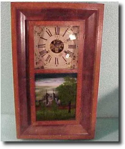 8 day, double weight, time only. Dead beat escapement, retaining power, solid movement frames. 38 inch oak case in excellent original condition. 12 in...
