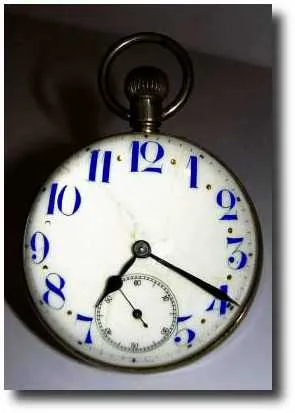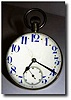 This clock is in running order, however the porcelain dial was damaged and is poorly filled in the center, and with hairlines. The well jeweled movement is visible from the rear. Note the flash covered part of the numeral 10. Diameter of ball 3" In perfect condition these bring 3 to 4 hundred dollars, so our estimate reflects some expense in restoring the dial: $125-225