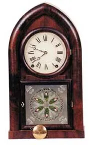 Pedestal case, nickel or silver, etched dial surround, back wind, plush back cover, 6 1/2 inches wide, running....
