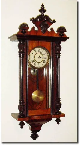 We are unable to find this clock in a catalog, however, it is extra clean with no extra holes or modifications of any kind. Case with book matched ven...
