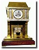 from the French Industrial and novelty series. The gong striking Marti movement has a pendulum in the form of a cooking pot which oscillates in the fireplace. The "cousin" to this clock may be seen in Derek Roberts' book: Mystery Novelty and Fantasy Clocks, (1999), page 263, and also in the Meraux Collection (Sotheby's), lot no. 6. This clock is in good original condition, complete with "pot and lid" pendulum and andirons; the only minor shortcomings are the tip of the minute hand which has been improperly replaced, and gong assembly has been bent away from the hammer and will need attention. Round time and strike movement recently cleaned. The multi piece brass case is mounted to a dark red marble base with ormolu feet. Hard to find in complete condition. Height 16" $1500-2000