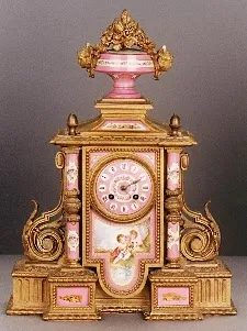 GILT BRONZE AND PORCELAIN MANTLE CLOCK,