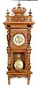 8-day springwound time and strike, carved walnut case with pediment, the door with porthole above rectangular pendulum window together between carved ...