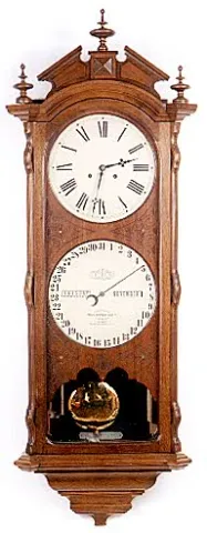 DOUBLE-DIAL CALENDAR WALL CLOCK, Ithaca Calendar Clock Co., c.1880,