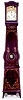 the two-weight movement behind a white enamel dial with brass repousse frame, housed in a pine case with painted wood grain and scrollwork, the true M...