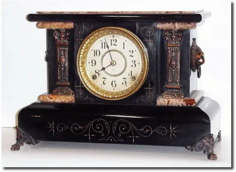 C.1899, Seth Thomas Adamantine, Black and Tan in good original condition.