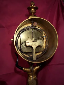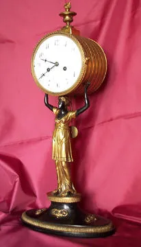 The totally bronze clock case holding the movement is ringed and decorative, matching the engined turned bezel . A convex glass covers the porcelain d...