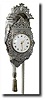 C.1900, English, for the Dutch market, miniature stoelklok, the case of hallmarked silver, and the quality exceptional. Note the finely engraved detail to the case and the perfect proportions, including the chain, a mini pulley and mini pendulum as well. The movement is an English 1-day lever movement, which is complete but will need attention; porcelain dial and gold hands are perfect. This is a lovely decorative item. I remember one of these changing hands in the 1970s for more than the reserve on this one. Height 6" Reserve $600