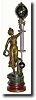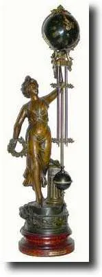 C.1900, Fench, Patinated Spelter, Swinging mystery timepiece in excellent original condition. This statue of "Progres", retains original polychrome decorations and is very colorful. The "arm" is excellent, with original patina, numerals, and hands. Runs fine; nice clock. Height 23" $3000-3500