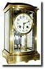 with mercury pendulum in good condition. There is a minor chip, lower right in rear beveled glass; rest is intact. Good porcelain dial with Gothic styled Arabic numerals, original hands, gong, etc. Well made movement is signed Marti (+H and H), runs OK and is striking on a coiled wire gong. Height 9" $400-500