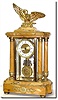This clock had been stored away for some time, and the front glass is chipped and the rear glass is missing. Small chip in porcelain dial around the "F-S' stem at 12, and a crack in the marble base. The beveled glass is easily replaced, and the cracked marble is repairable. Retains excellent French movement and super pendulum accented by two silvered geese. The trim mounts and eagle are gilt bronze. Height 25'