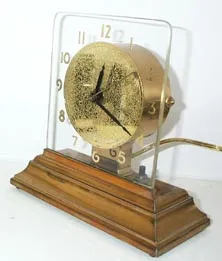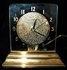 Stepped Brass Base, Square Glass Face, Textured Gold Dial, Painted Numbers. Light with switch. Condition Excellent. 7 1/2" x 7 1/2" x 3 1/2"...