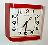 Plastic square and angled red body. White face. Condition: Very Good. 5 3/4" x 6 3/4" x 2 3/4"....