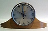 Light Tan Wood. Silver Face. Hinged Glass Cover. Model No.2E. Original label on bottom. Condition: excellent . 6"x 10 3/4"x 2 3/8"....
