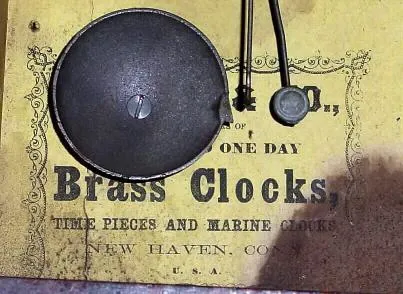 This cute timepiece has an internal alarm movement, original dial and hands. The label is very clean. The mahogany veneer case has an old finish. The ...