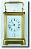 Grand Sonnerie, Repeat and Alarm, in excellent original condition. This is an extra clean clock with all beveled glass good and the porcelain dial perfect; original hands and lever platform intact. With selector level in the base for Grd. Sonnerie, Silence, or Hours and Quart's. Nice to see a clock that has not been mucked about. Ht, handle up, 7" $2250-2750