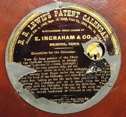 C.1886, E. Ingraham and Co., "Ionic Calendar", 8-day time and strike, double dial calendar wall clock in very good restored condition.