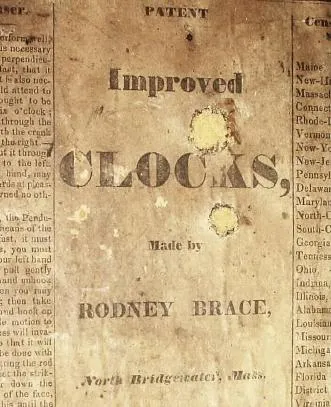 C.1830, Rodney Brace, North Bridgewater, Mass., 30-hour Mini Torrington shelf clock, with restoration.