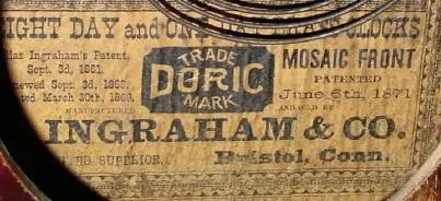 C.1880, E. Ingraham and Co., "Doric", 8-day time/strike shelf clock, in generally good condition.