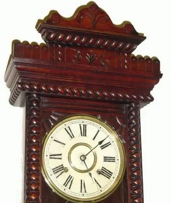 C.1901, Ansonia Clock Co., "Queen Jane", walnut wall clock in excellent original condition.