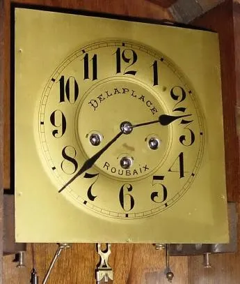 The case retains its original finish which has been cleaned and polished, and retains all 6 panes of heavy beveled glass in the door. The gold toned d...