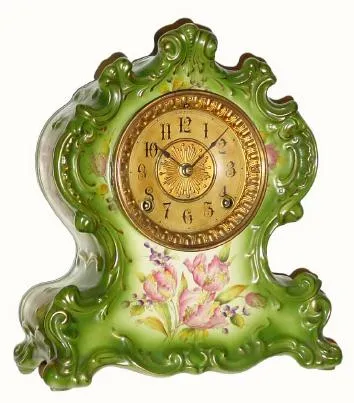 C.1901, Ansonia Clock Co., "WACO", porcelain china clock in very good original condition.