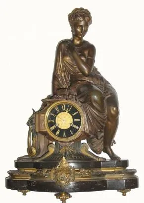 C.1875, French, Bronze and Marble Figural clock, "Imperia", in very good original condition.