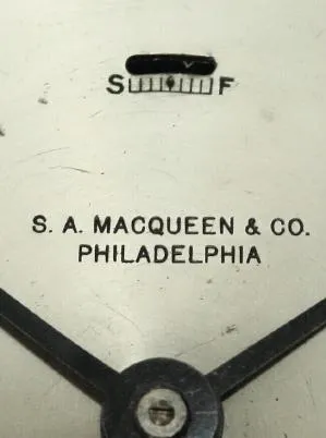 This red brass cased model was made for "S. A. McQueen and Co., Philadelphia". The clock has serial No. 86426. The silvered dial is in nice condition ...