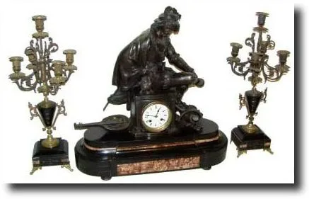 C.1900, French Musician figural clock set,
