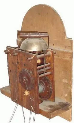 The period pine case has been stripped of whatever finish it originally had, and now with a coat of wax. The waist door is fastened to the case with c...