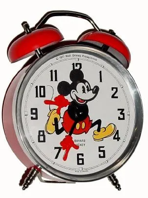 This clock has been packed away and shows no evidence of use. The dial is bright and crisp with no damage. Title of clock on dial "Bayard Mickey", alo...