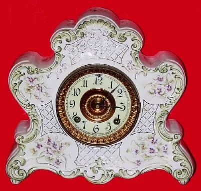 C.1915, Ansonia, Dresden Porcelain clock, made to specs as a promotional item, and in very good original condition.